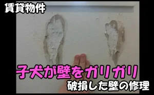 港区のマンションで、子犬がほじった壁を「壁全体の壁紙を貼り直して補修」した事例です。